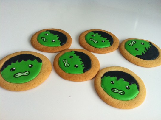 Hoy traemos una de comics con sus superhéroes correspondientes. Por consenso se eligieron 3 personajes, porque más no estaba dispuesta a hacer, por el rollo de cambiar formas y colores de la glasa. Como mucho 4 colores, hacer galletas con tanto tono es volverse loca con tanta manga pastelera coloreada, cambia que te cambia. Los tres ganadores fueron: Capitán américa,Cat woman y Hulk, y aquí los tenemos: