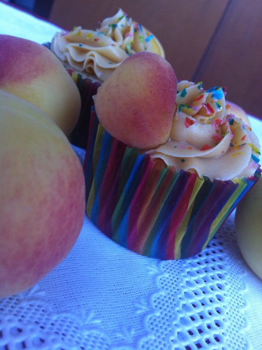 Hoy ha tocado una de cupcakes. La masa es de albaricoque y el topping de dulce de leche.