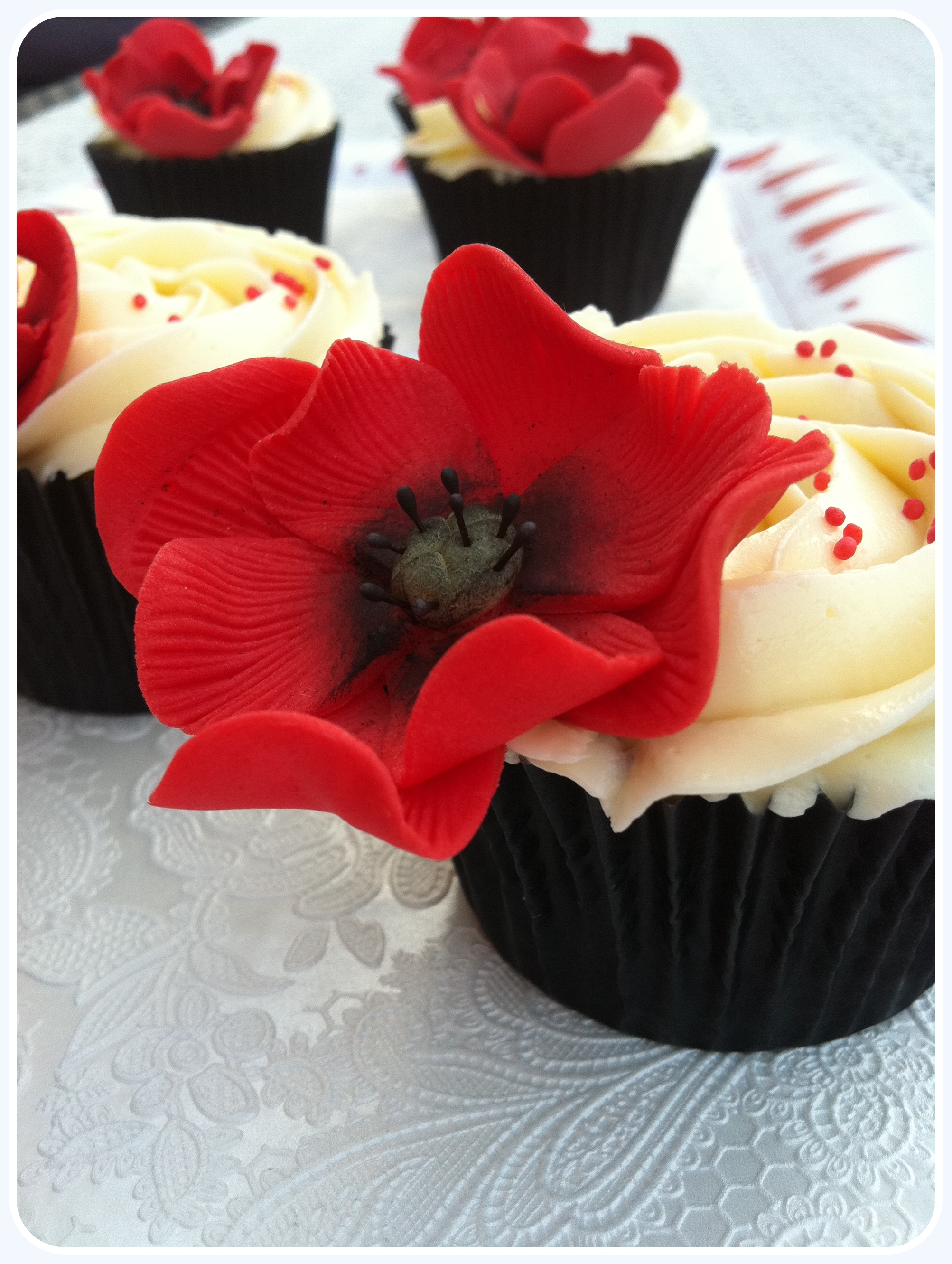 Podéis utilizar de topper cualquier flor u otra cosa que se os ocurra, pero os dejo el enlace aquí de cómo podéis hacer las amapolas de fondant rojo que llevan estos.