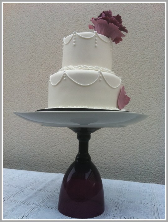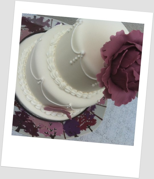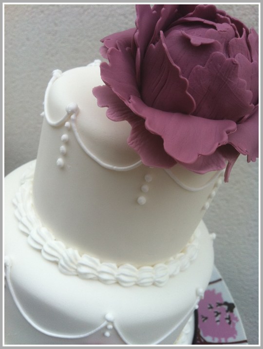 Nos enseñó a nivelar los bizcochos,hacer el relleno de buttercream, cubrir la tarta y forrarla con fondant, montar los pisos y por último a decorarla con una peonía y glasa.