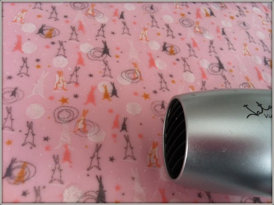 Antes de retirar la hoja hay que asegurarse de que el dibujo se ha transferido, levantado una esquinita. Si no lo ha hecho, hay que seguir un poco más dándole al secador.