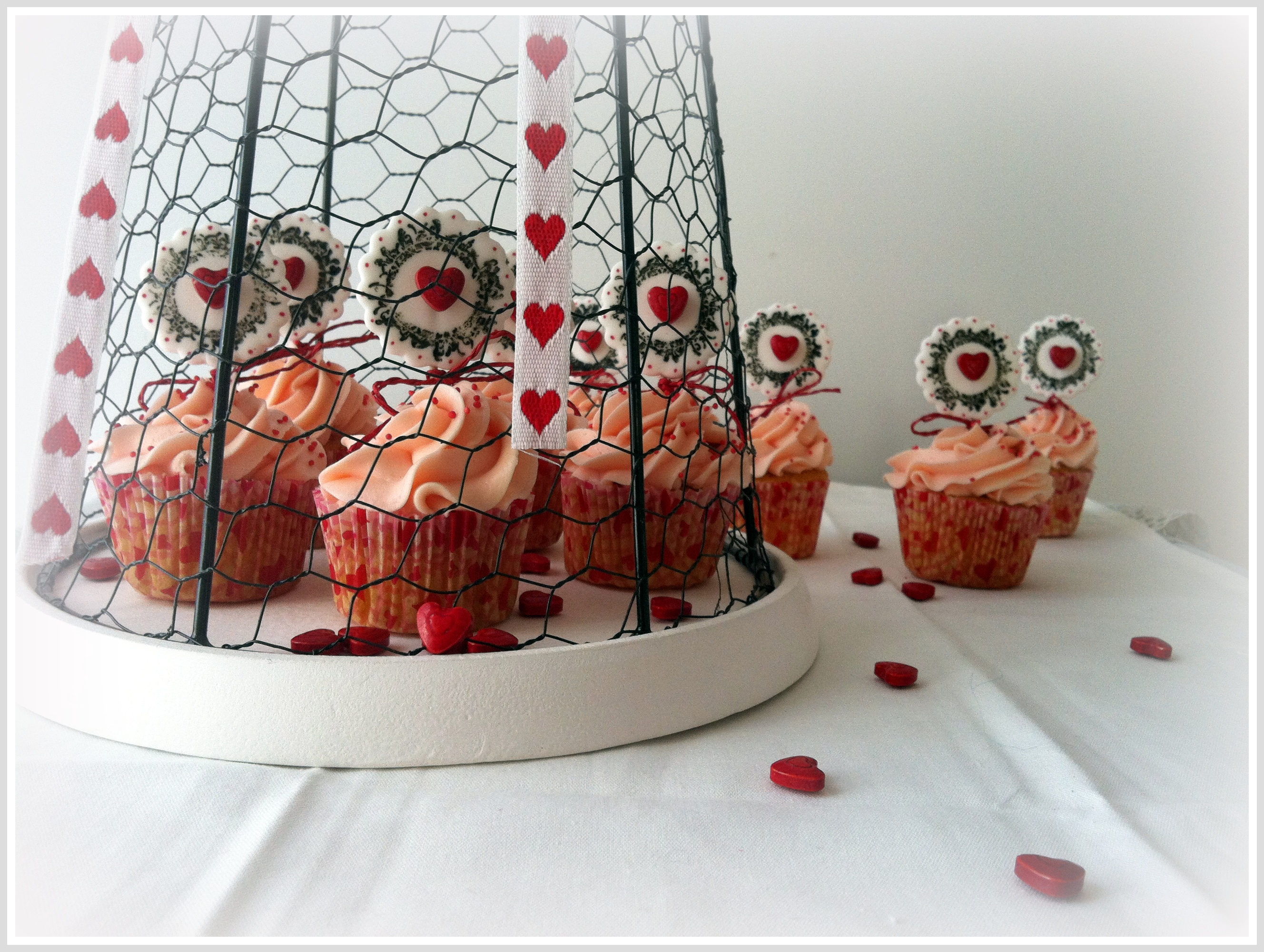 A pesar de que yo no he celebrado San Valentín nunca, mi retina ha sucumbido a las miles de imágenes «sanvalentinianas» que invaden estos días la red y lo que no es red, y mandó a mi cerebro la orden para hacer estos cupcakes que hoy publico. Como muchos sí lo celebráis, os dejo mi propuesta más amorosa por si os animáis y os sirve de idea.