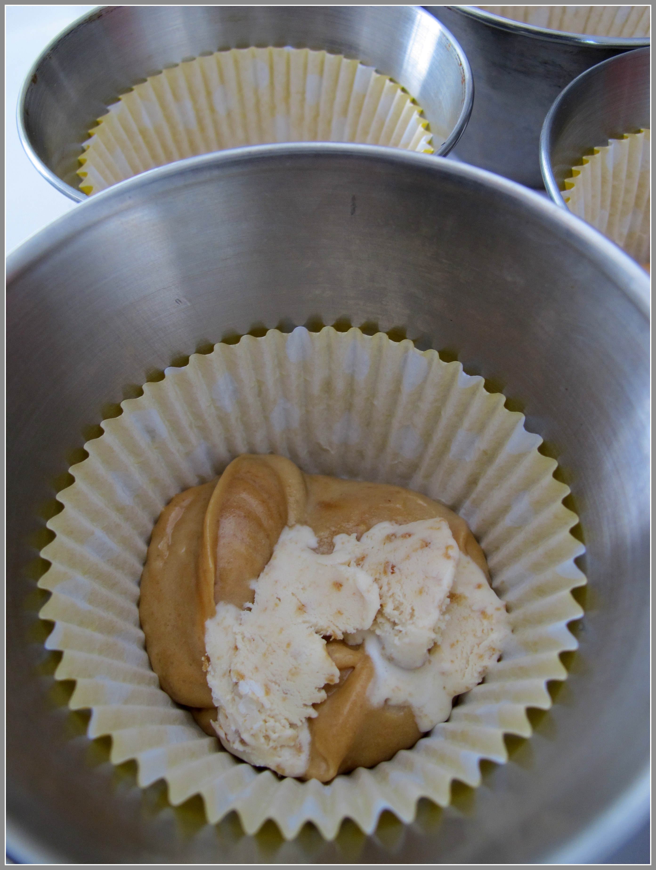 El caso es que como ahora siempre tengo el susodicho helado en el congelador y puesto que iba a preparar unos cupcakes de caramelo pensé en añadírselo a ver si se les impregnaba algo de sabor y sííííííí, ocurrió.