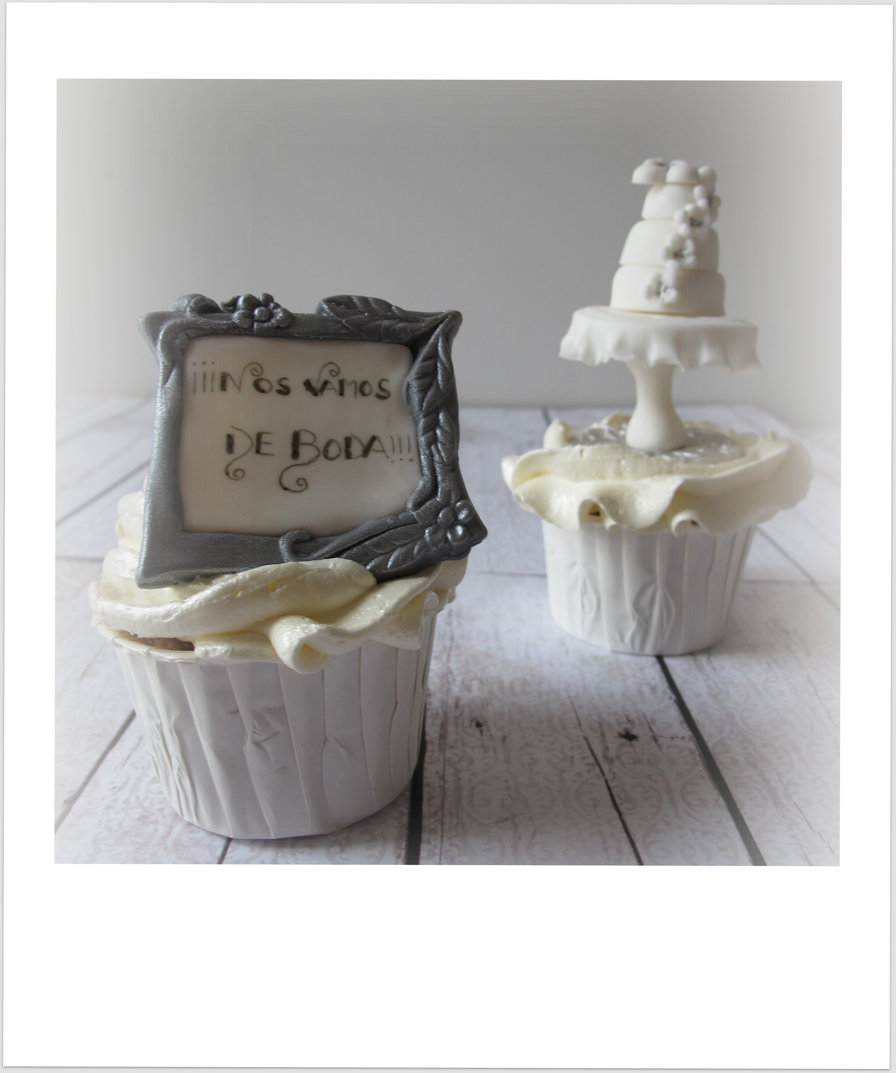 Colocamos las decoraciones en los cupcakes y ¡ Nos vamos de boda !
