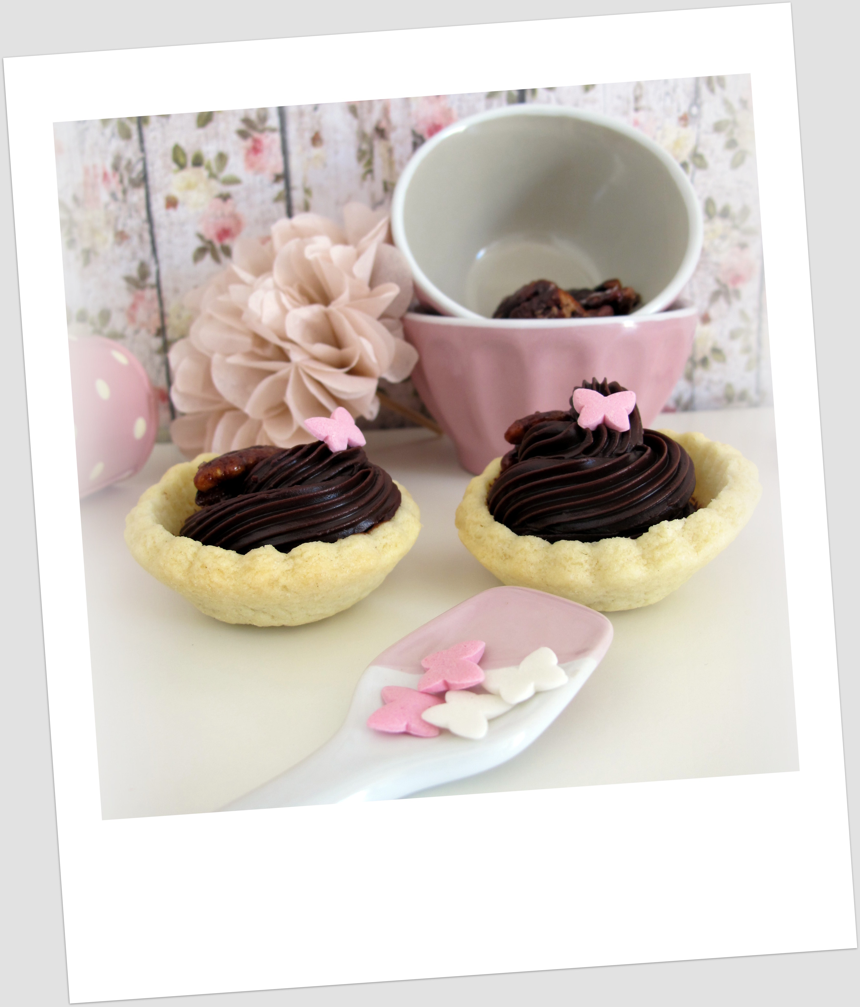 Hoy os dejo una receta para todos a los que os guste el chocolate negro. Si os gusta el chocolate más suave podéis sustituirlo por chocolate con leche sin ningún problema: Tartaletas rellenas de ganache de chocolate y con nueces de Pecan caramelizadas. Aquí va la primera foto.