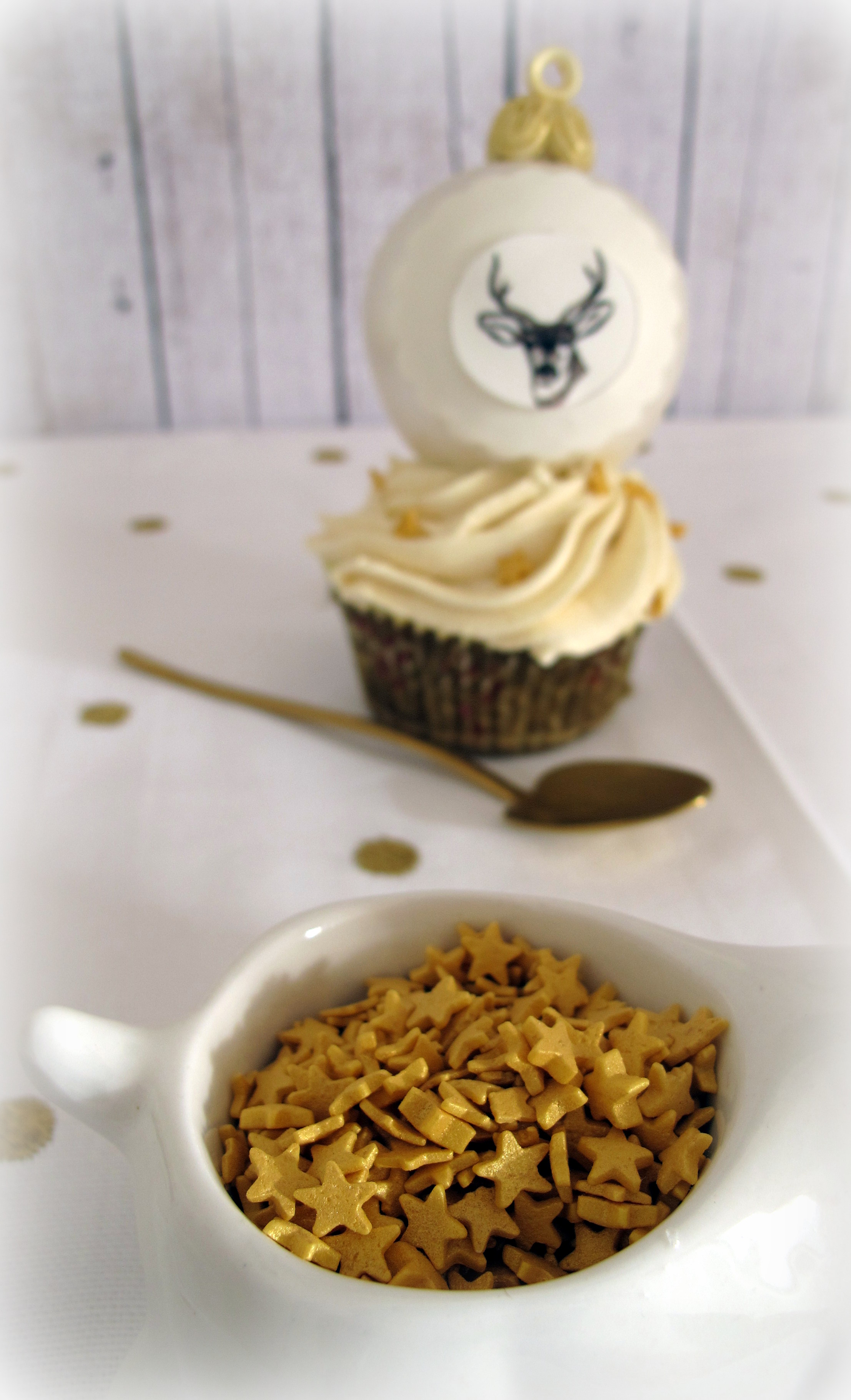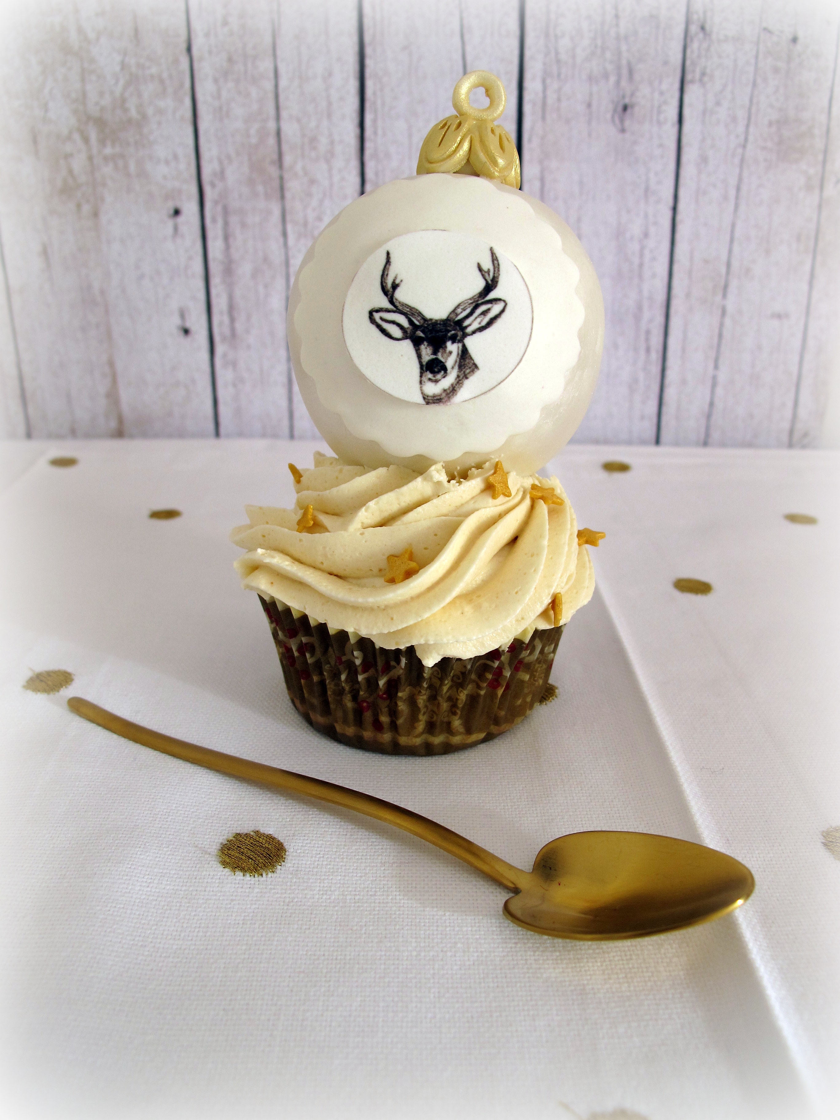 Las bolas de Navidad que he puesto de adorno como toppers de los cupcakes son 100% comestibles: fondant, papel y pinturas comestibles.