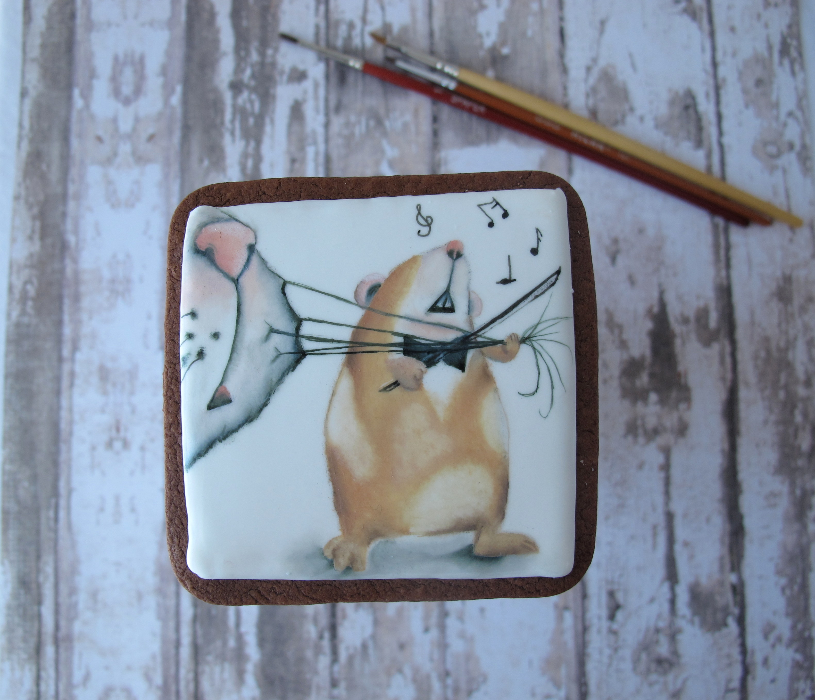 Empiezo por el cartel que he diseñado, donde tenéis la información, con una de las galletas que pintaremos en el curso: ardilla jugando al escondite.