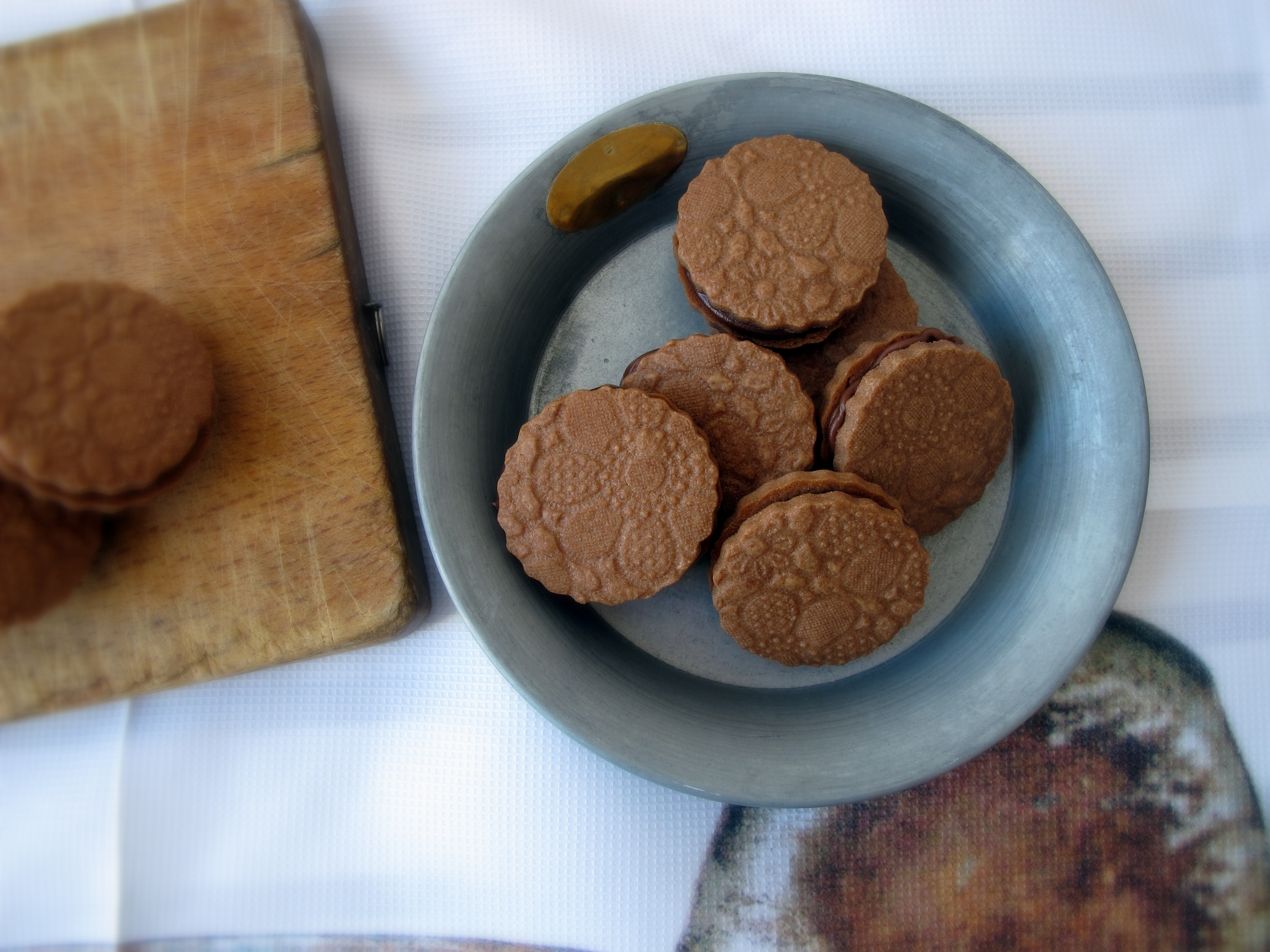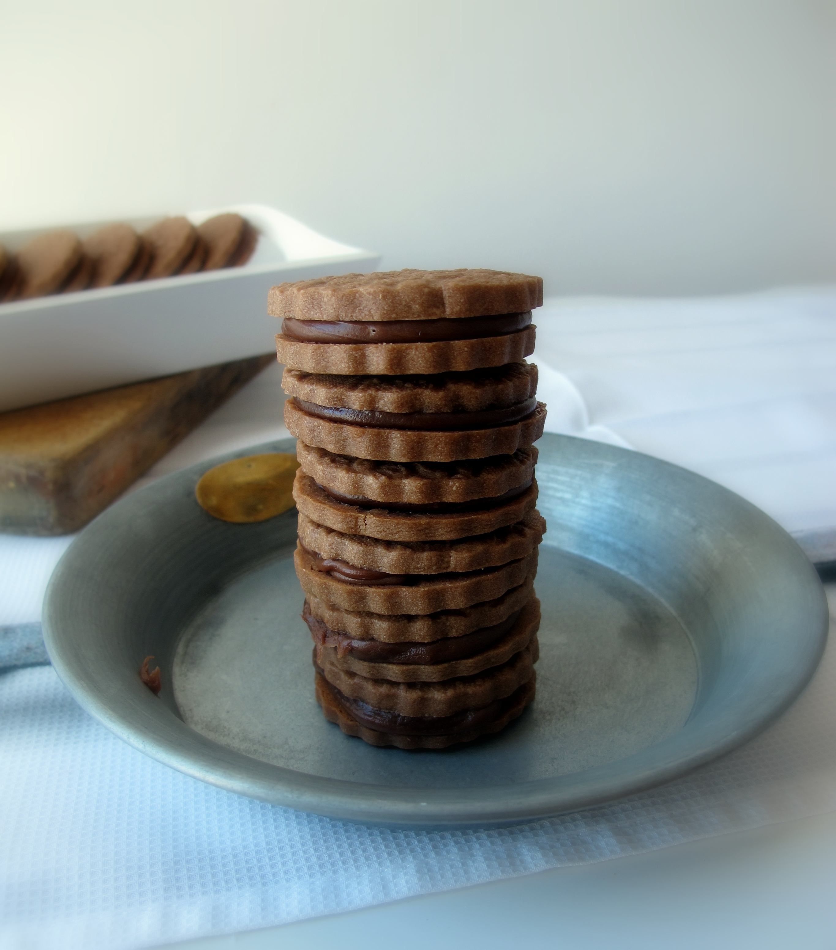Hoy toca comer galletas!! Son de chocolate y las rellené de una crema de chocolate con galleta de speculoos. La receta de las galletas (sin texturizar , claro está) os sirve también para hacer galletas decoradas y glasear sobre ellas. Una vez cocidas quedan muy uniformes y muy lisitas.