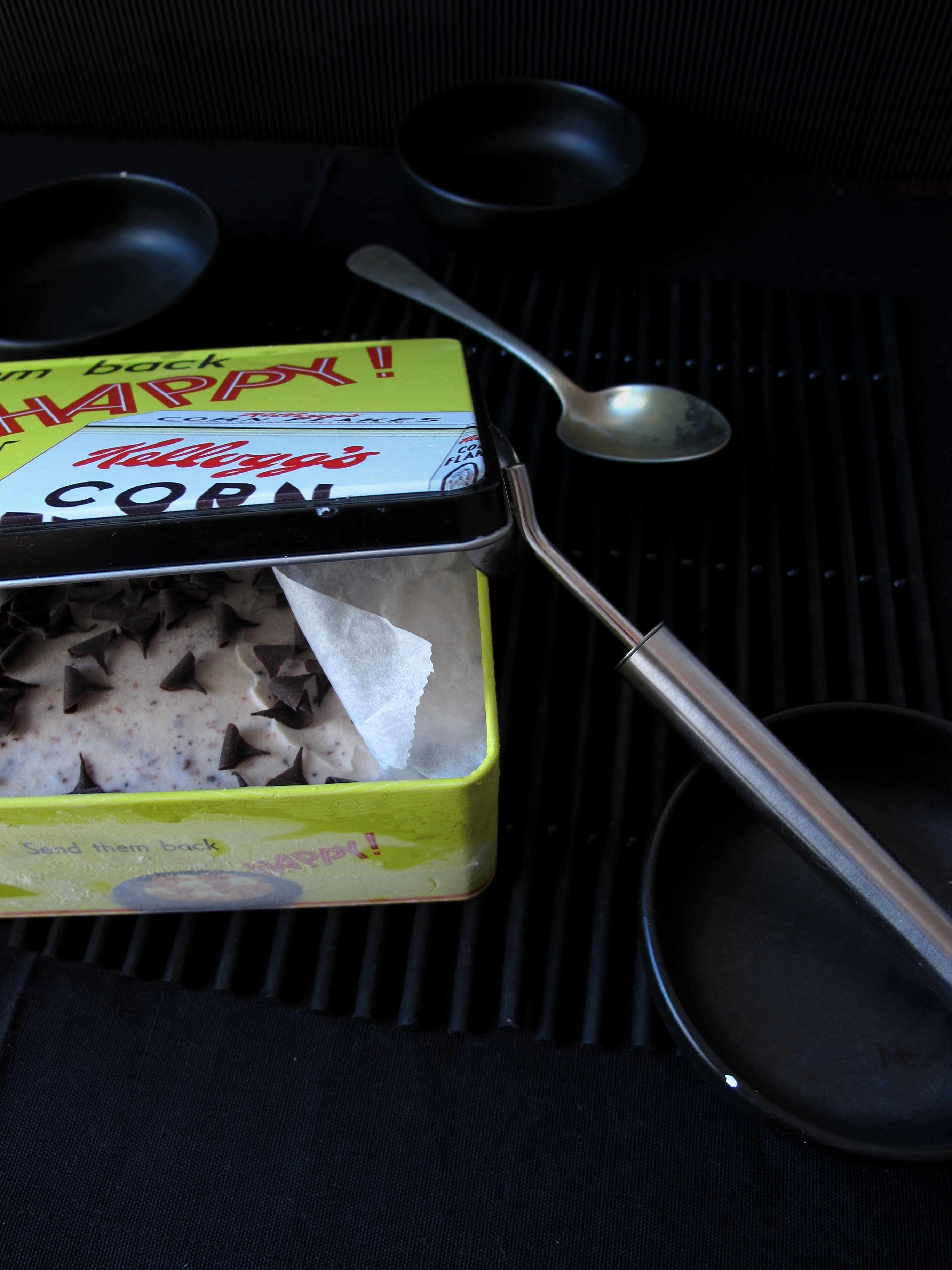 De vuelta de vacaciones ya, retomando poco a poco la rutina. Supongo que en septiembre todo volverá a su normalidad.Por ahora me siento incapaz de encender el horno con el calorazo que hace por aquí, por lo que me he puesto a hacer helados como una loca , que es lo que más me apetece. Así también voy amortizando el regalito de la heladera de la K.A. Como tenía unos plátanos muy maduros que estaban a punto de ponerse de luto total, he hecho helado de plátano con chocolate.