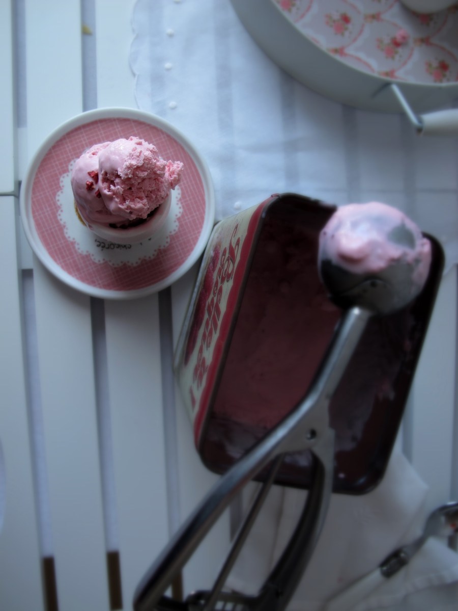 Helado de yogur griego con frambuesa