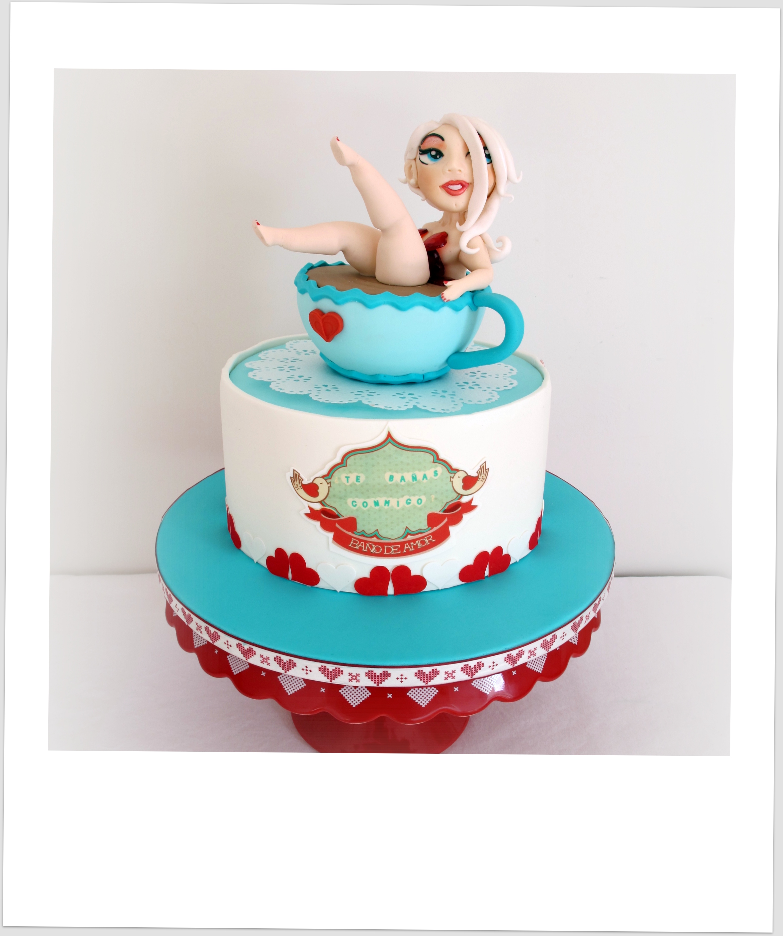 Esta tarta está toda decorada con fondant y con papel comestible. Luego la maquillé con pincel y pinturas en polvo también comestibles.