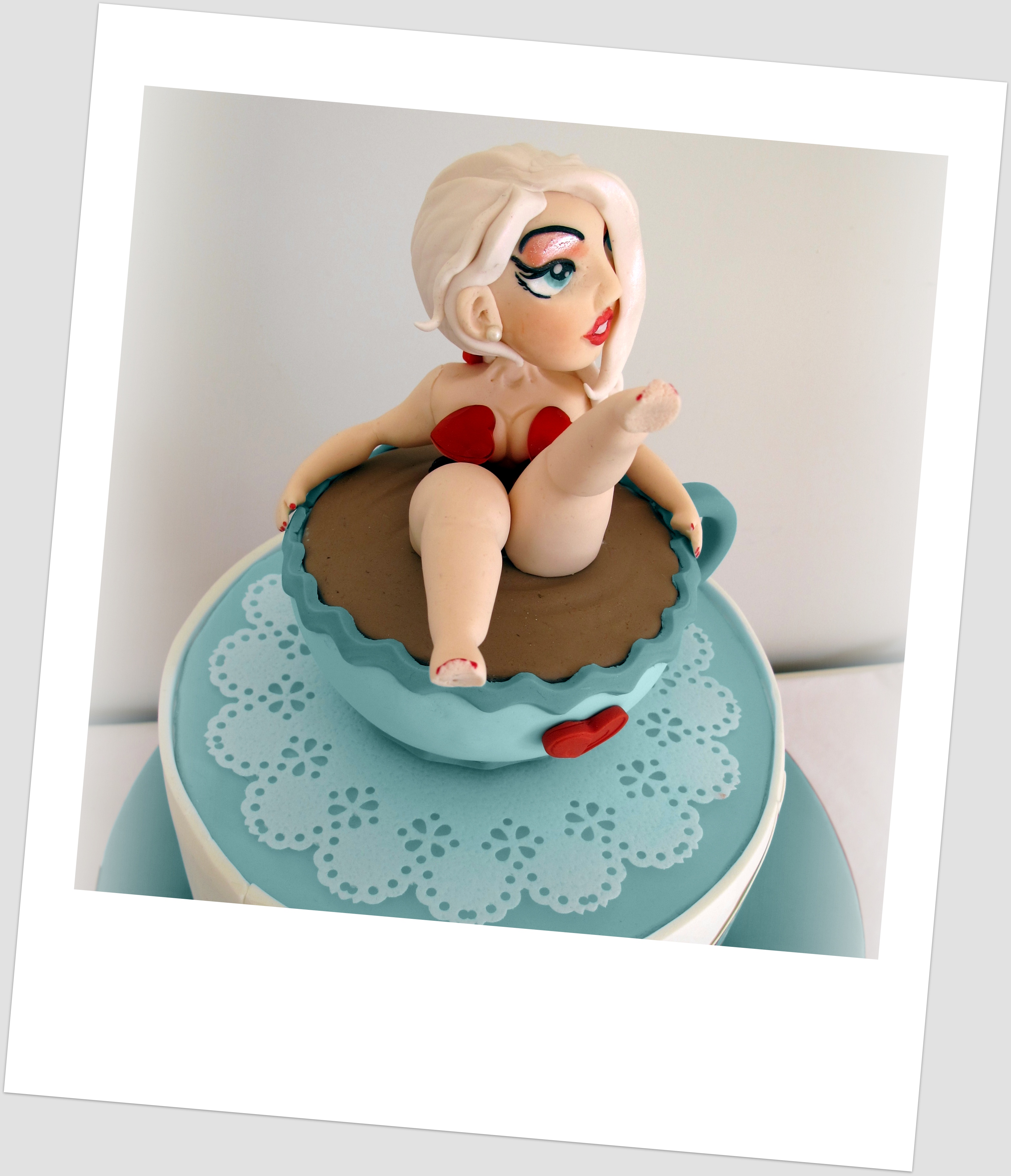 Esta muñeca que se baña plácidamente en la tacita de chocolate también lleva su bolita correspondiente