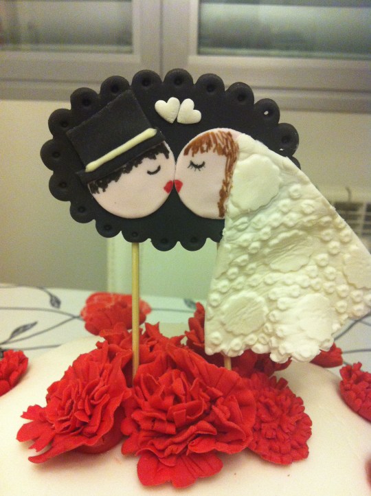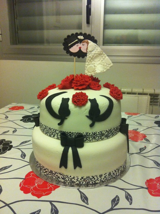 Hoy un post de la tarta de novios. Las fotos , antes de empezar, ya aviso que están francamente mal porque no había luz y no tuve tiempo de hacer fotos de día, pero menos es nada así que hay que conformarse….